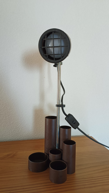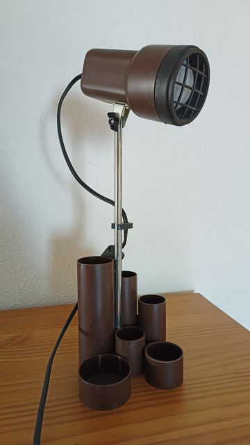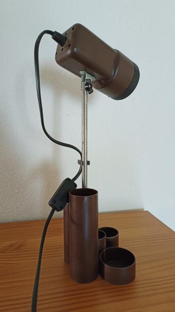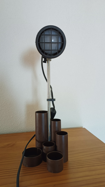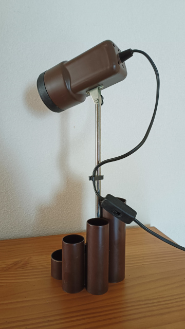 A unique vintage table lamp by Eichhoff Design (Germany) A rare collector's piece dating from the '70, complete with the original protective cover. This industrial design combines sturdy simplicity with playful geometry and is a true eye-catcher in any interior.